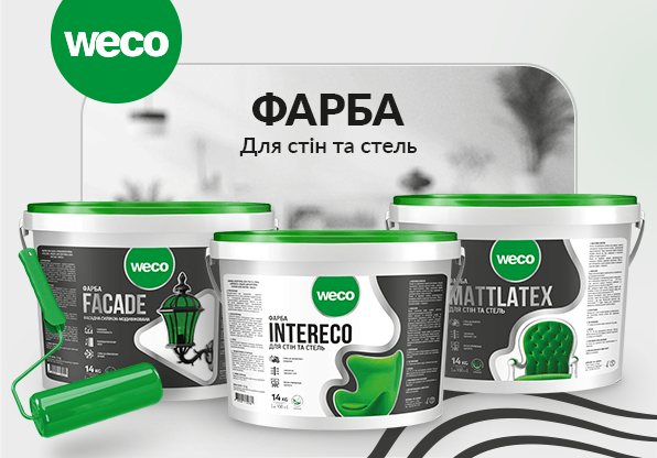 Бренд «WECO» («ВЕКО») представляє серію фарб для інтер’єрних і фасадних робіт. Місяці кропіткої роботи відділу маркетингу та технологів виробничого підприємства «WEMACO» і ось результат – три найбільш запитувані продукти, за оптимальною ціною: